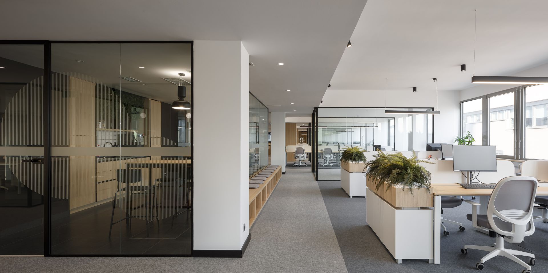 Prirodni materijali prave balans između uređenog kancelarijskog prostora i toplog okruženja za boravak zaposlenih.