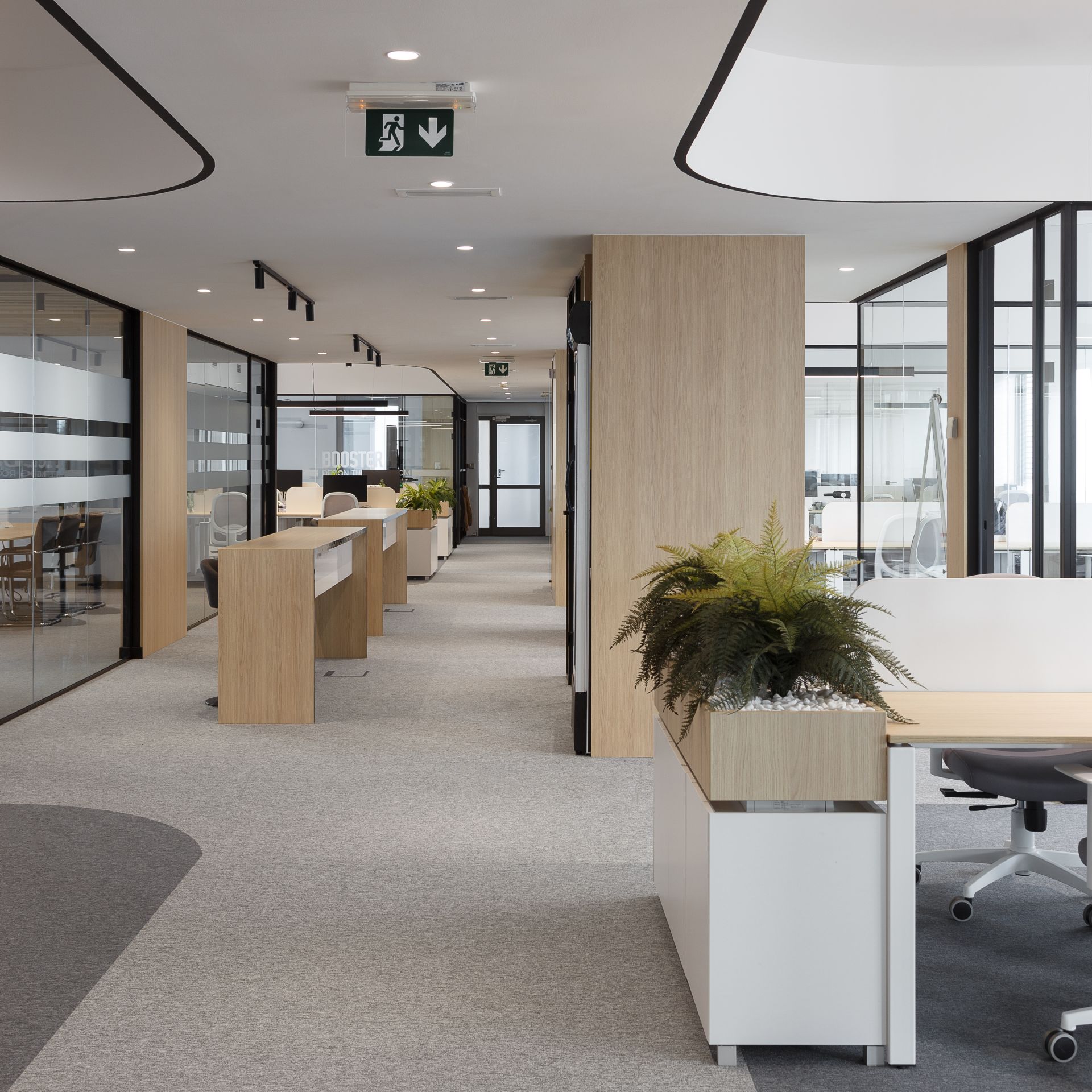 „Ovo je postignuto racionalnom organizacijom departmana i staklenim pregradama koje kreiraju zatvorene kancelarije, a ujedno i segregaciju samih departmana, dok sa druge strane ne stvaraju vizuelnu barijeru u prostoru i omogućavaju da se ostvari utisak jedinstvenog prostora“ – kažu iz B11.