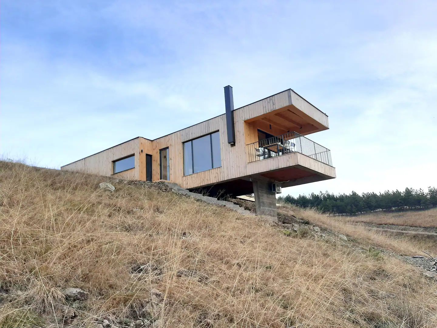 Konzola duga četiri metra nije samo tehnički izazov, već i arhitektonski potpis zbog kojeg ova planinska kuća odmah postaje prepoznatljiv simbol lokacije.