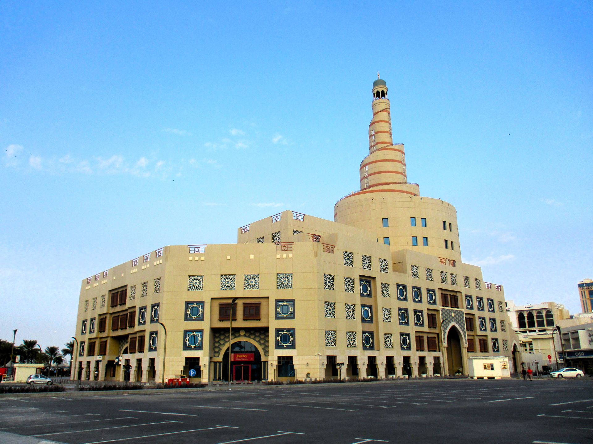 Recimo, Džamija Fanar ili Fanar Masdžid (masdžid i jeste džamija, da se ne dupliramo) je sagrađena 2008. i ima interesantne elemente katarske lokalne arhitekture i ugledanja na stare uzore – konkretno, njen nadimak „Spiralna džamija“ potiče od toga što je uzor bila čuvena Spiralna džamija u Samari, u Iraku.