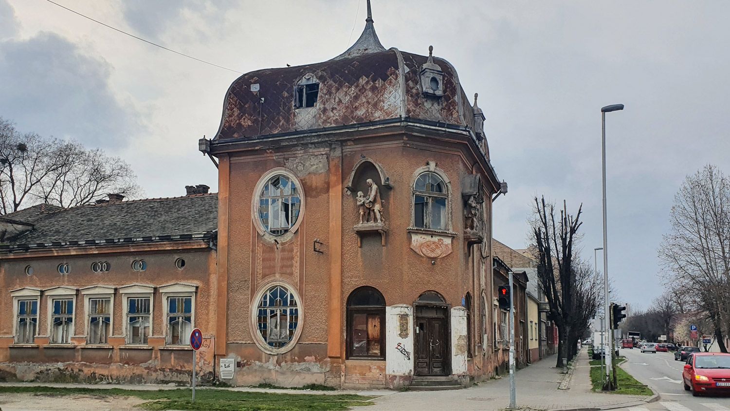 Uprkos devastiranom stanju, ova ikona Rume i dalje privlači pažnju svojom lepotom, dok svojom skulpturom na fasadi “Deda i unuk” opominje da moramo poštovati prošlost predaka.