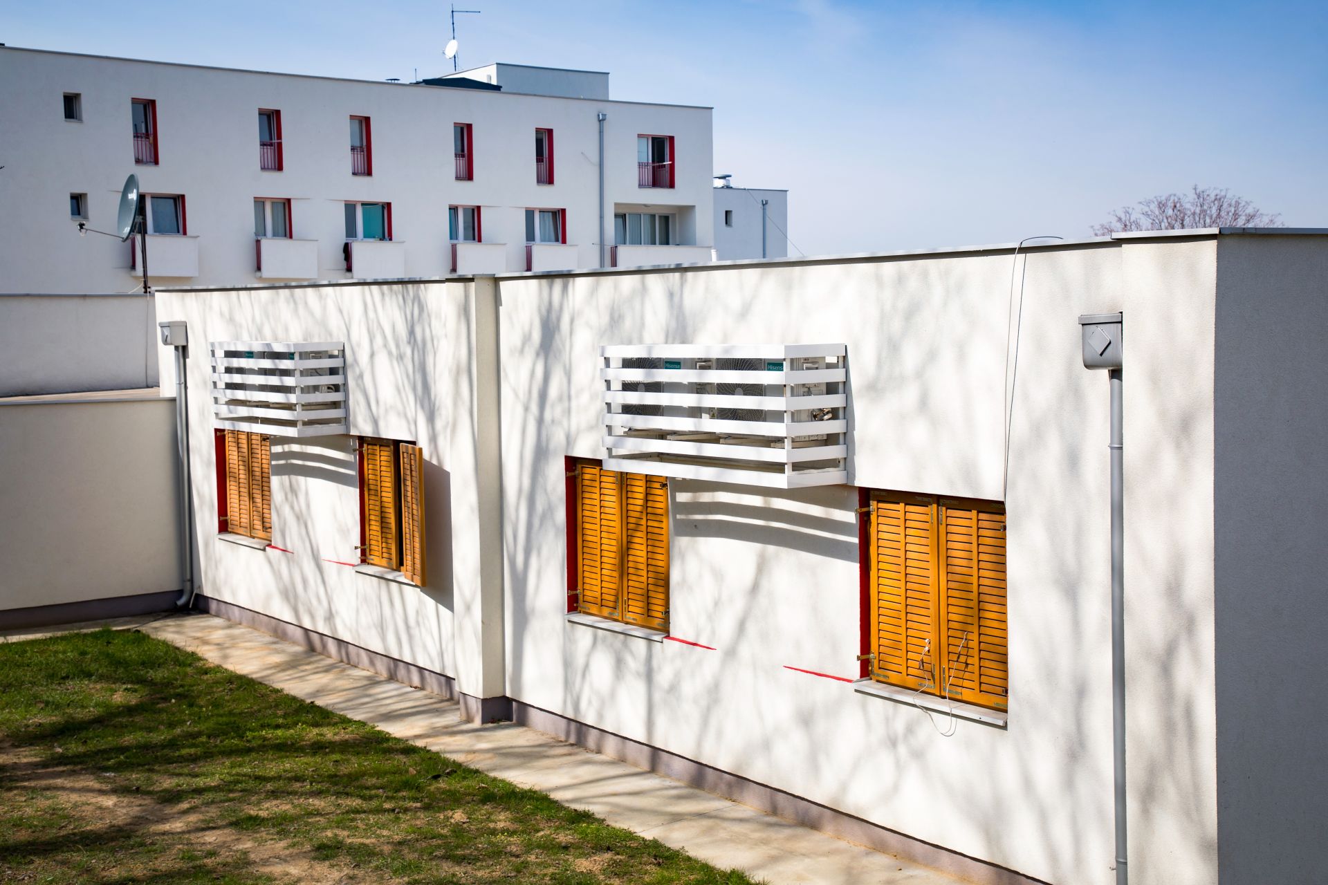 Oko objekata je izrađen sasvim novi trotoar sa završnom oblogom od štampanog betona, kao i novih staza za šetnju, nove žardinjere za cveće, moblijar sa svim neophodnim elementima u prostoru za nesmetano kretanje slabo pokretnih starih lica.