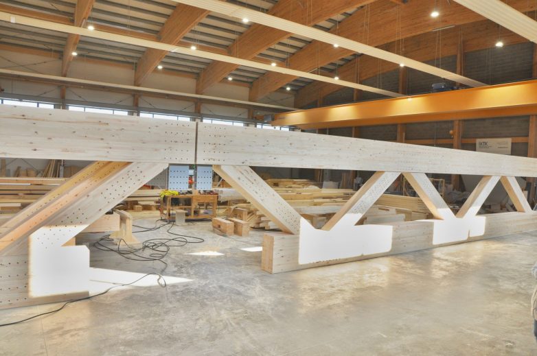 „Da bi se obezbedila horizontalna stabilnost konstrukcije, u nivou krova postoje čelični ukršteni nosači koji prenose opterećenja na vertikalne čelične nosače i CLT 140 mm panele“ – navode inženjeri.