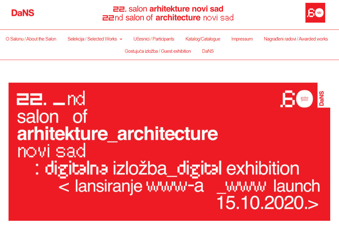 Na ne tako naprednom digitalnom servisu, ali u duhu virtuelnog prikazivanja i domaće manifestacije poput 22. Salona arhitekture Novi Sad i 29. Salona Urbanizma, odlukom da se premeste iz fizičkog u efemerni svet, omogućili su značajnim regionalnim ostvarenjima u domenu arhitekture, urbanizma i graditeljstva da se predstave širokoj publici. Postavljanjem radova na digitalnu platformu, praćenu virtuelnim otvaranjem Salona, održao se kontinuitet, a salon se premestio u savremeni diskurs.