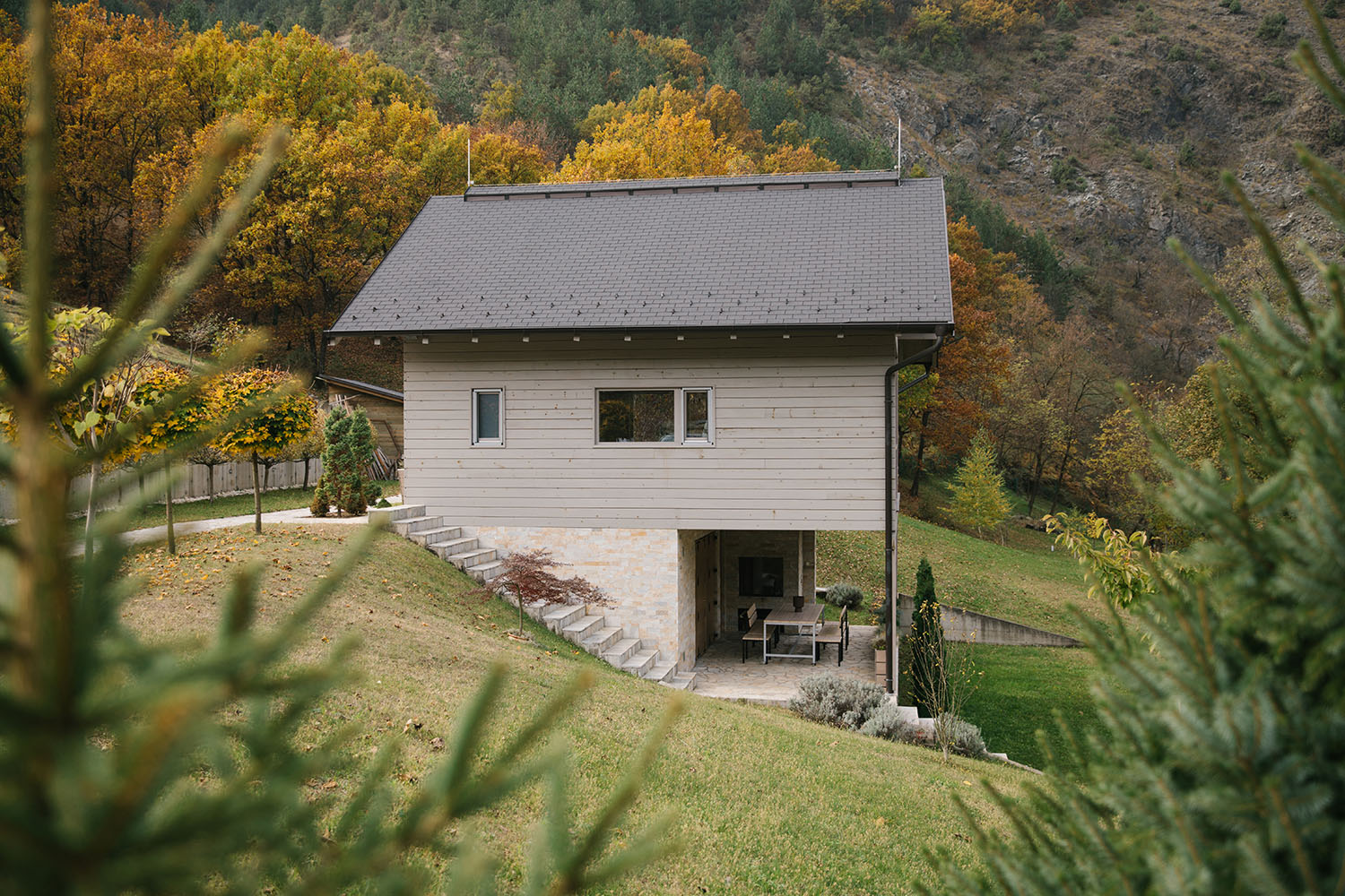 Početni zadatak podrazumevao je izgradnju kuće za odmor u takozvanom etno stilu. Namera je bila da se nova intervencija skladno uklopi u tradicionalni planinski ambijent, te je izbor materijala i tehnika građena bio od presudnog značaja. „Moja ideja je bila da se u formi zadrži deo te tradicije, ali da se u obradi drveta ipak pristupi na malo drugačiji način. Tokom rada na projektu, uspeli smo da transformišemo taj etno momenat i da unesemo specifičan skandinavski vajb“ – ističe arhitekta Filip Rašković za naš portal.