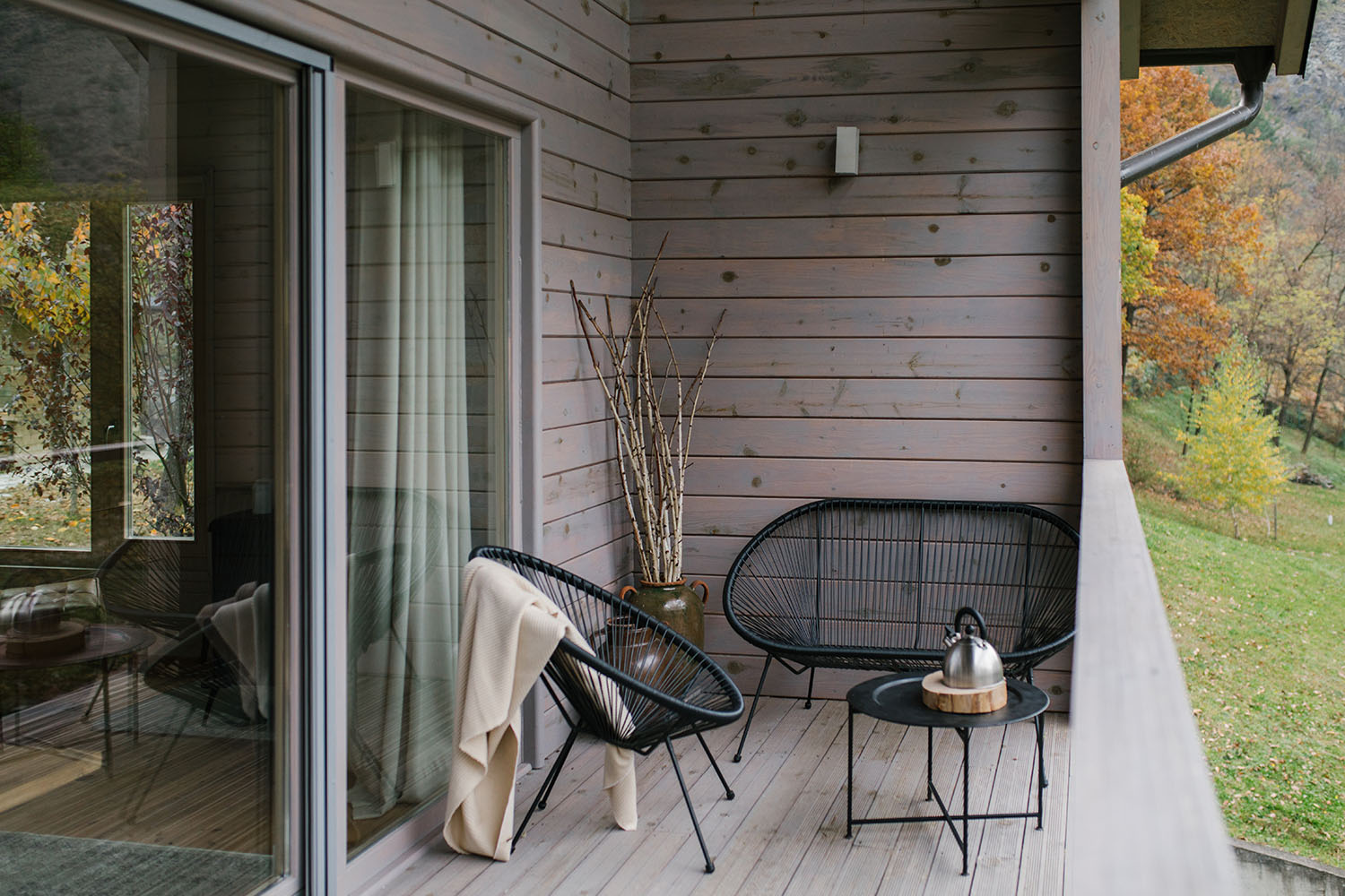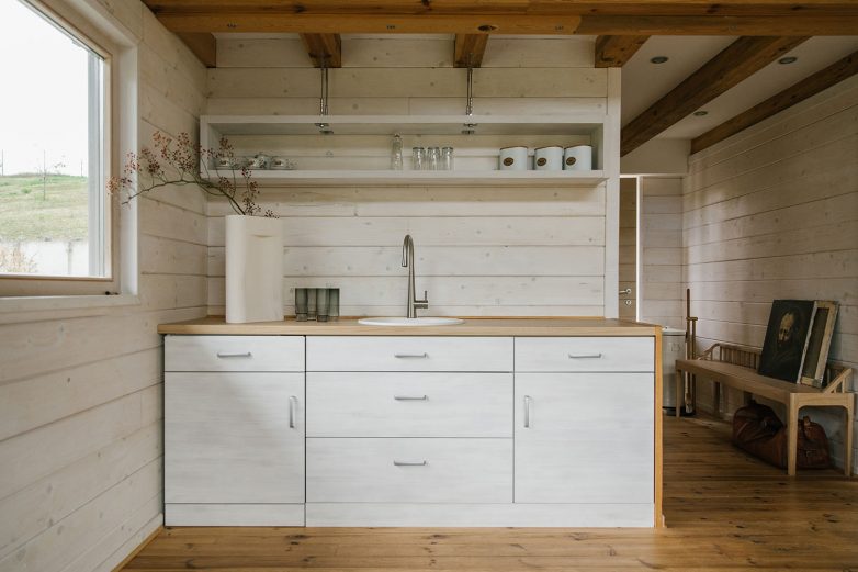 Vikendica je projektovana za odmor i uživanje u prirodi. S tim u vezi, glavni cilj je bio rasteretiti prostor od suvišnih sadržaja i stvoriti malu oazu mira.