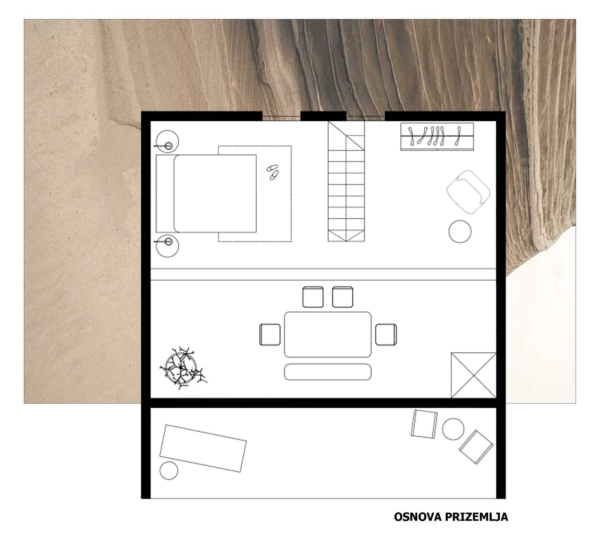 Jedino što mi smeta su propusti u grafičkom prikazu osnove prizemlja. Gde su prikazana ulazna vrata i zid na koji je oslonjeno stepenište?Kako su se prozori sa potkrovlja preselili u prizemlje? Copy paste u izradi tehničke dokumentacije koliko god da olakšavaju rad, toliko dodatno traže našu pažnju.