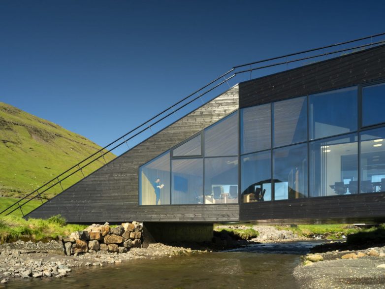 Nekada dve nezavisne opštine na Farskim ostrvima, sa suprotnih obala reke, udružile su se i postale jedna opština pod imenom Eystur. Potom je podignuta gradska kuća koja služi i kao most pa se preko pristupne staze i zelenog krova može pređi na susednu obalu.