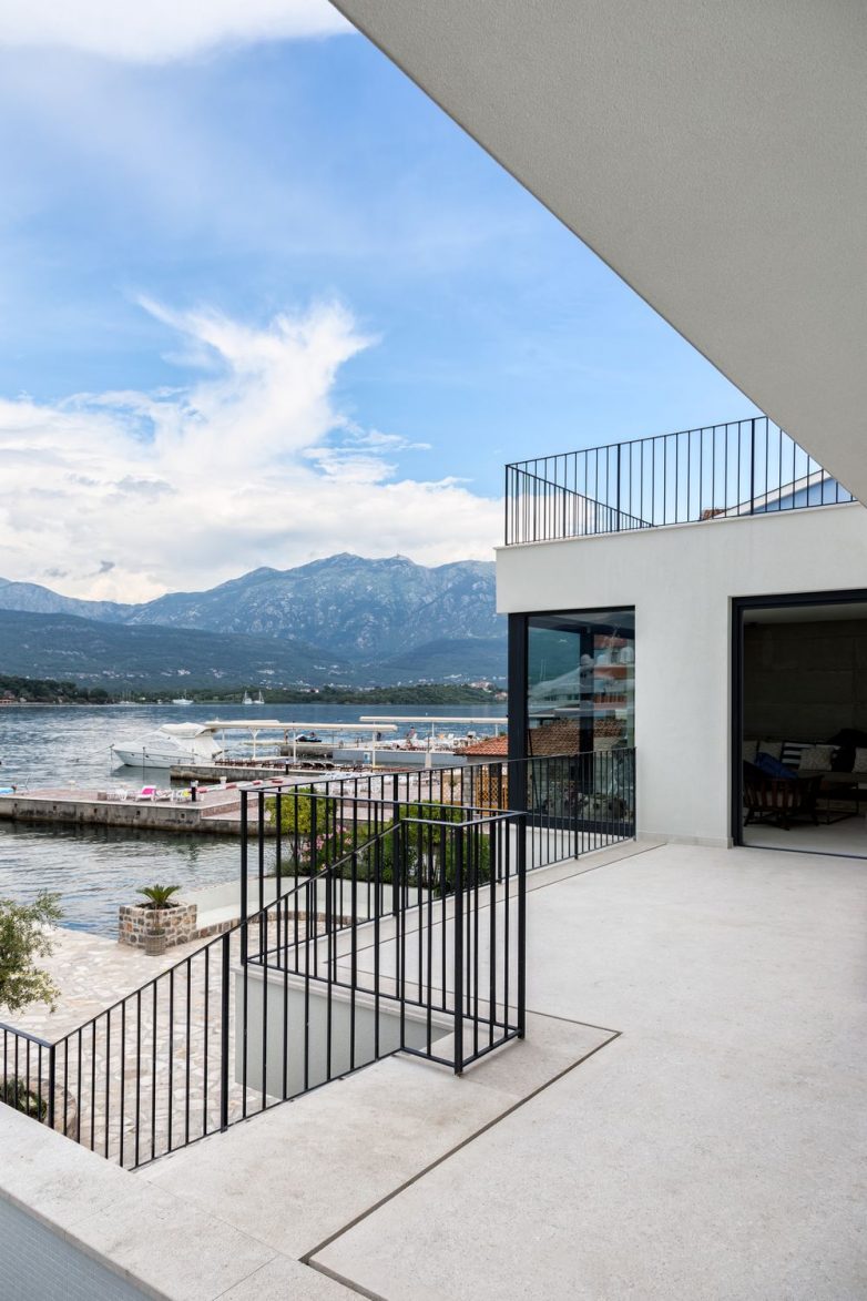 Arhitektura objekata je u potpunosti prilagođena lokaciji. U formi arhitektonskih objekata očigledna je njihova otvorenost prema moru, a zatvorenost prema susedima i saobraćajnici. Objekat je masivnim staklenim stenama otvoren prema moru pa korisnici prostora u svakom momentu mogu iz unutrašnjih prostora uživati u pogledu na zaliv.