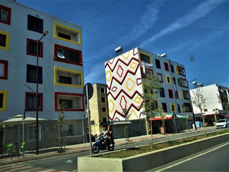Pa ipak, nije mogao da izdrži – pokazao je svoju koloritnu prirodu dodajući razne boje i geometrijske motive. I tako širom Albanije.