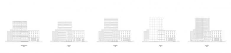 Kako za naš portal objašnjavaju iz Folić Architects, rešenje oblikovanja fasade proizišlo je iz analize vrednosti projekta Milice Štrerić, odnosa proporcija na fasadi objekta kao i odnosa između delova objekta. Projekat bi trebalo da jasno definiše oba volumena, čime bi se akcentovala vertikalnost kule i stabilnost aneksa, koji je projektovan kao prirodni nastravak gradskog bloka. Volumeni se povezuju zajedničkim motivom, istaknutim horizontalama.