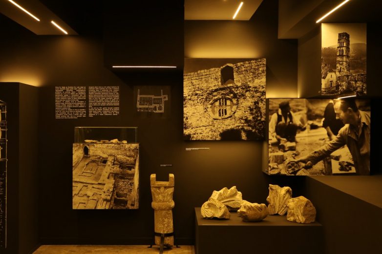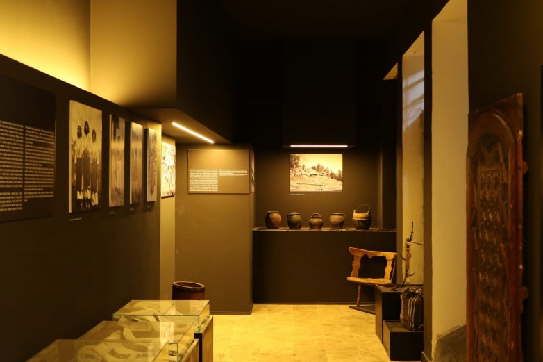 Arheološka i etnološka zbirka su također transformisane – umjesto pojedinačnih postamenata koji vizualno i kontekstualno fragmentuju prostor, izduženi pravougaoni oblici, poredani po obodu prostorije rade suprotno – povezuju eksponate prostorno, ali i vremenski, ukazujući na kontinuitet istorije i religije na tom tlu, ali i u ljudskoj kulturnoj svijesti.