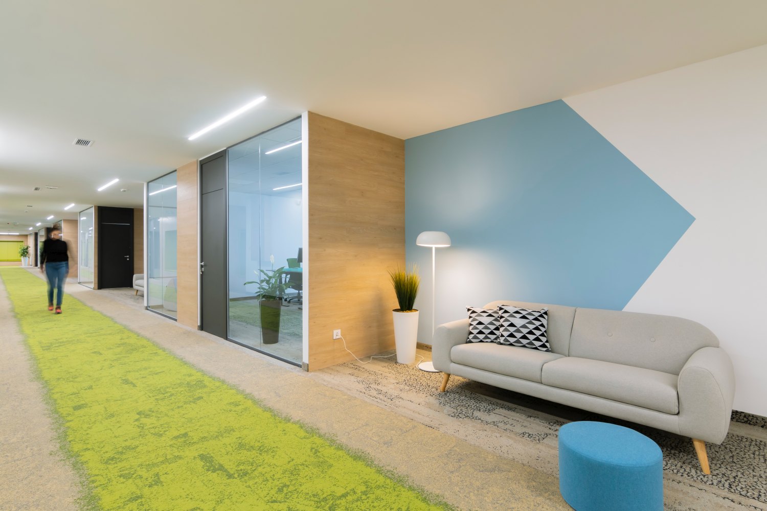 Šta je bolje: open-space ili zatvorene kancelarije? Možda nešto između? Enterijer prostora od 1.300 kvadratnih metara u Novom Sadu za IT kompaniju Codecentric potpisuje arhitektica Sonja Brstina, koja je ovaj poslovni prostor osmislila kao kombinaciju otvorenog i zatvorenog prostora.