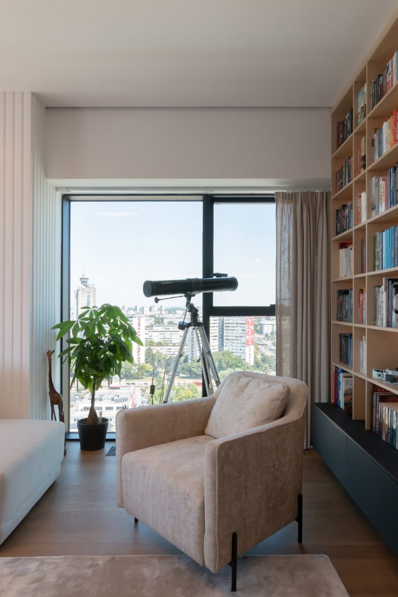 U jednoj od najviših zgrada u prestonici, u kuli West 65 visokoj 155 metara, arhitektica Sonja Brstina imala je priliku da dizajnira i kompletno opremi trosobni stan od 97 metara kvadratnih orijentisan na dve strane.