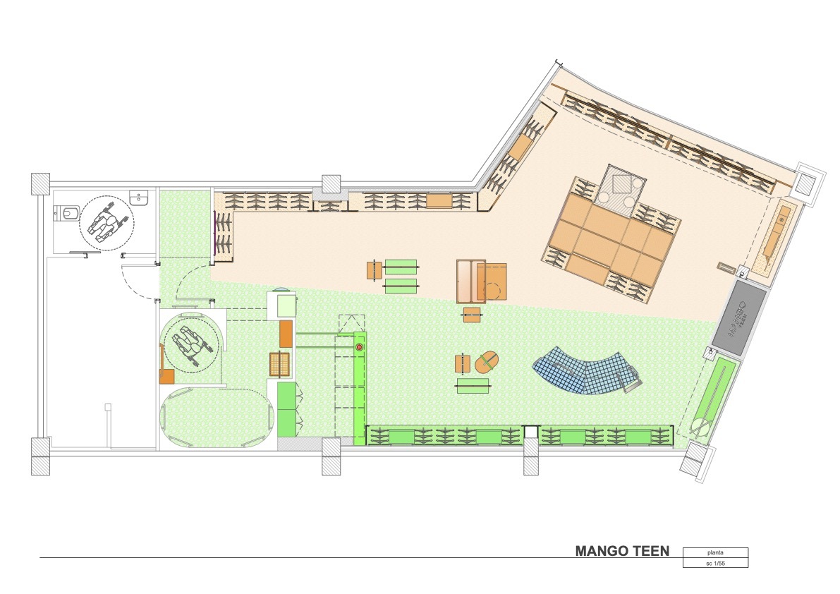 Na samom ulazu u prvu „Mango Teen“ prodavnicu, koja je otvorena u Barseloni, nailazimo na tunel sa pozadinskim osvetljenjem koji nas, prema rečima Ane Hernandez, vodi u budućnost u kojoj se konvencionalni elementi iz prošlosti smatraju futurističkim za nove generacije.