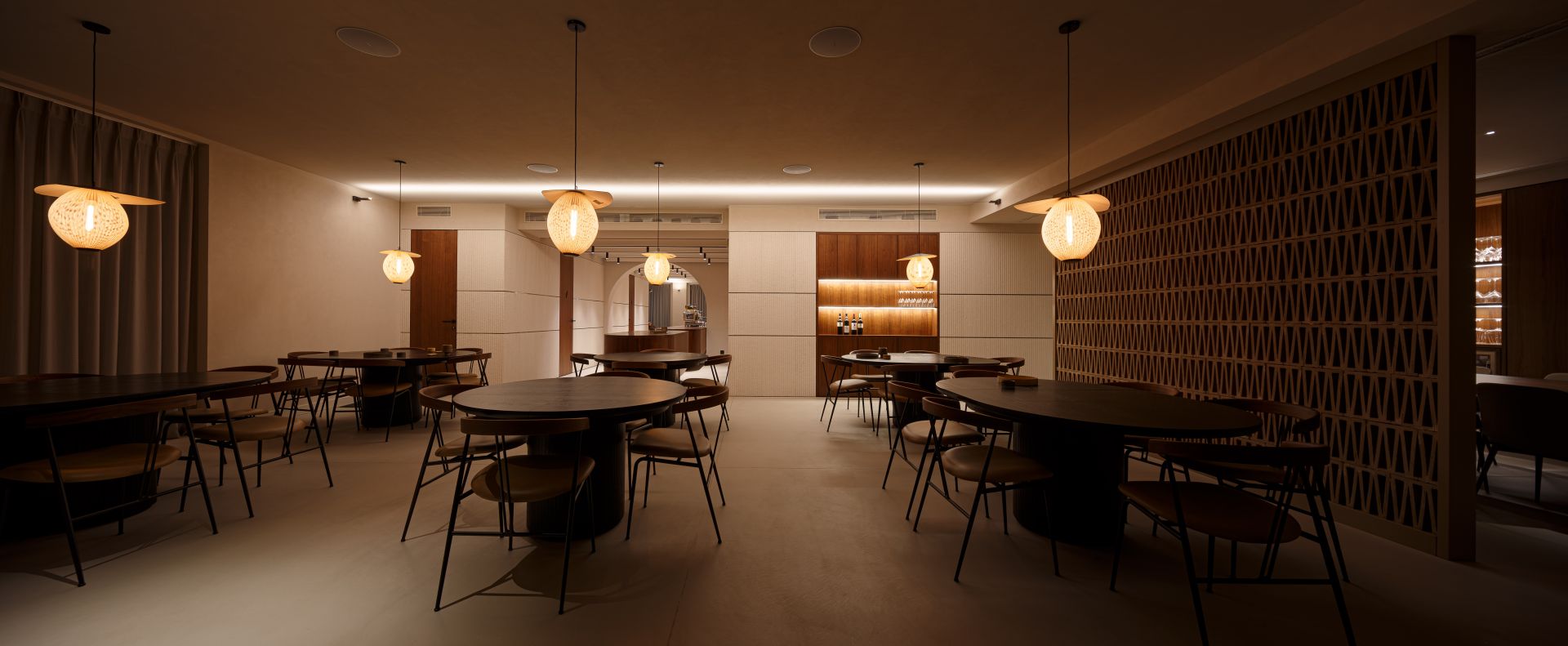 U restoranskom delu korišćeni lusteri Sattellite/Gubi, kojima je postignuta drugačija atmosfera u odnosu na ostatak prostora.