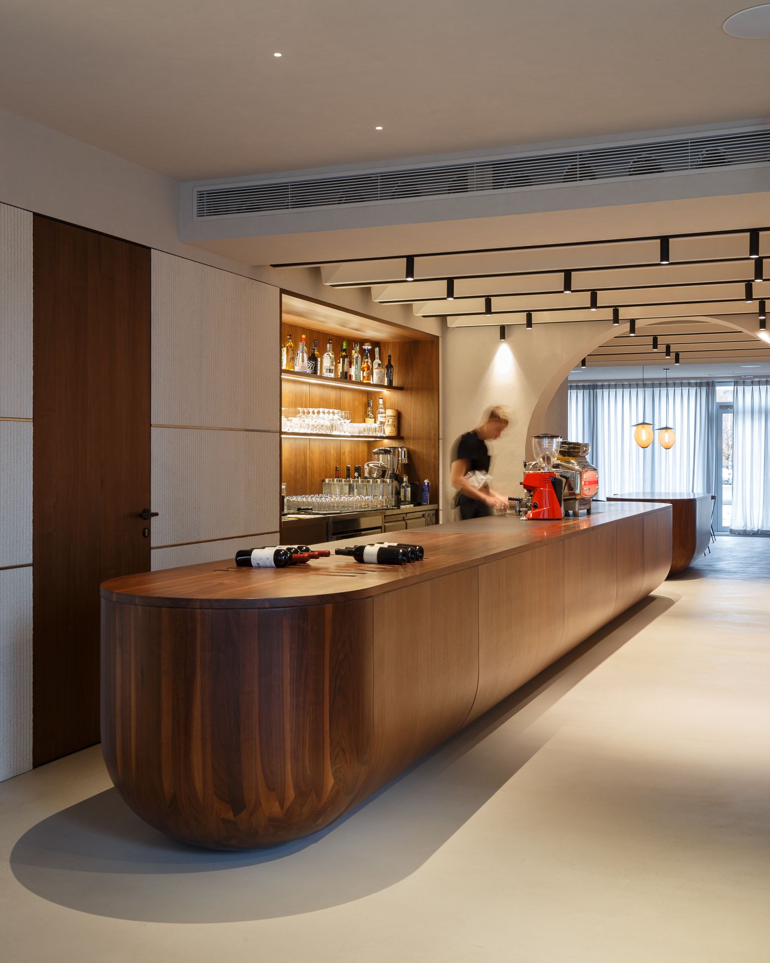 Tampon zona između dve funkcije je ispunjena dugačkim multifunkcionalnim šankom.
