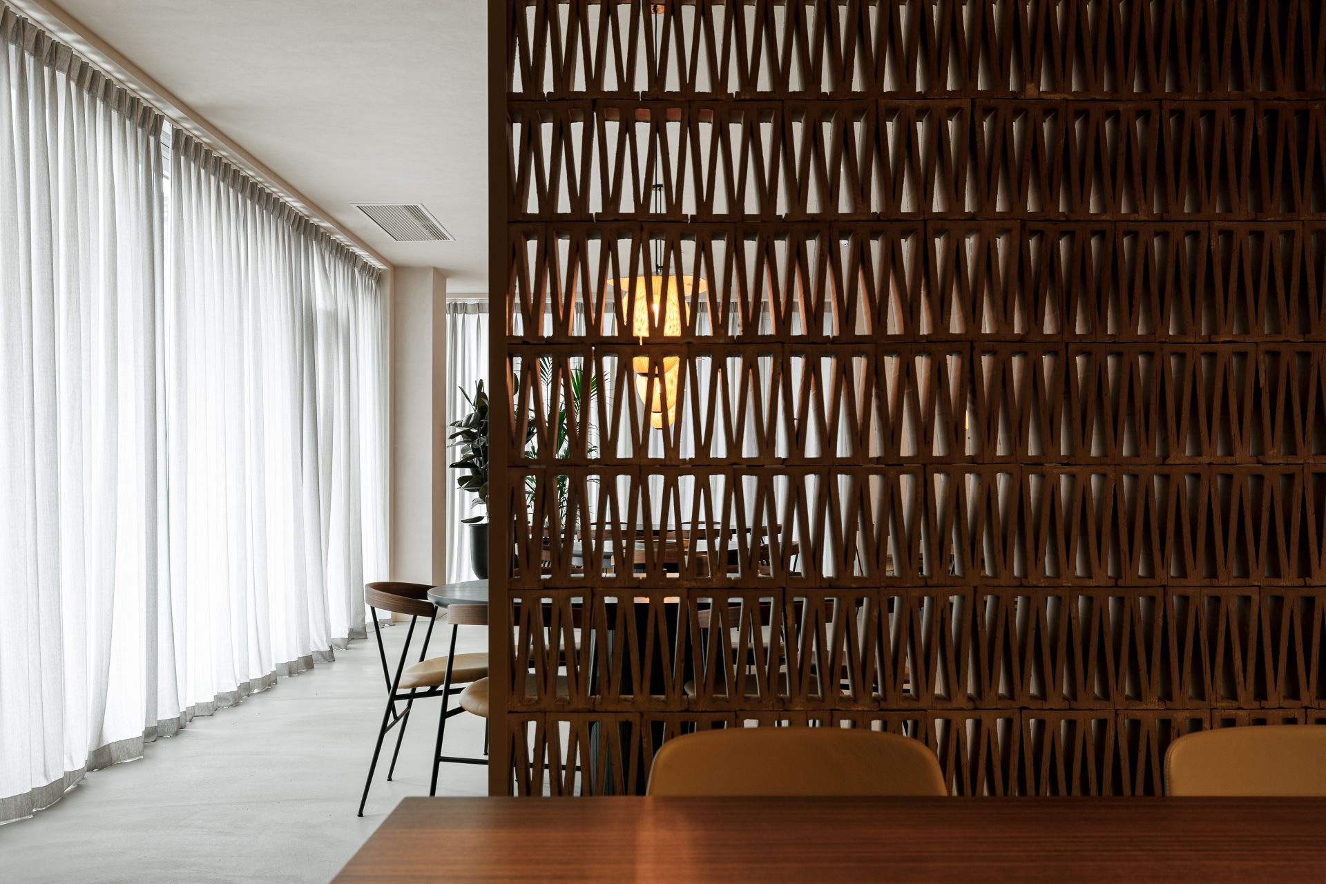 Ovaj upečatljivi element napravljen je korišćenjem 3D pregrade Celosia by Patricia Urquiola brenda Mutina koji u Srbiji zastupa kompanija EuroDOM.