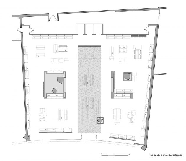The Spot je novi multibrend lanac premium prodavnica sportske opreme, koji trenutno ima tri prodajna prostora u Beogradu i Novom Sadu. Prilikom rada na dizajnu enterijera, cilj arhitekata iz biroa Modelart Arhitekti i Centra za digitalni dizajn bio je stvoriti dinamičan, savremen i prepoznatljiv prostor prilagođen kupcima koji sportskom odećom stvaraju sopstveni stil i identitet.