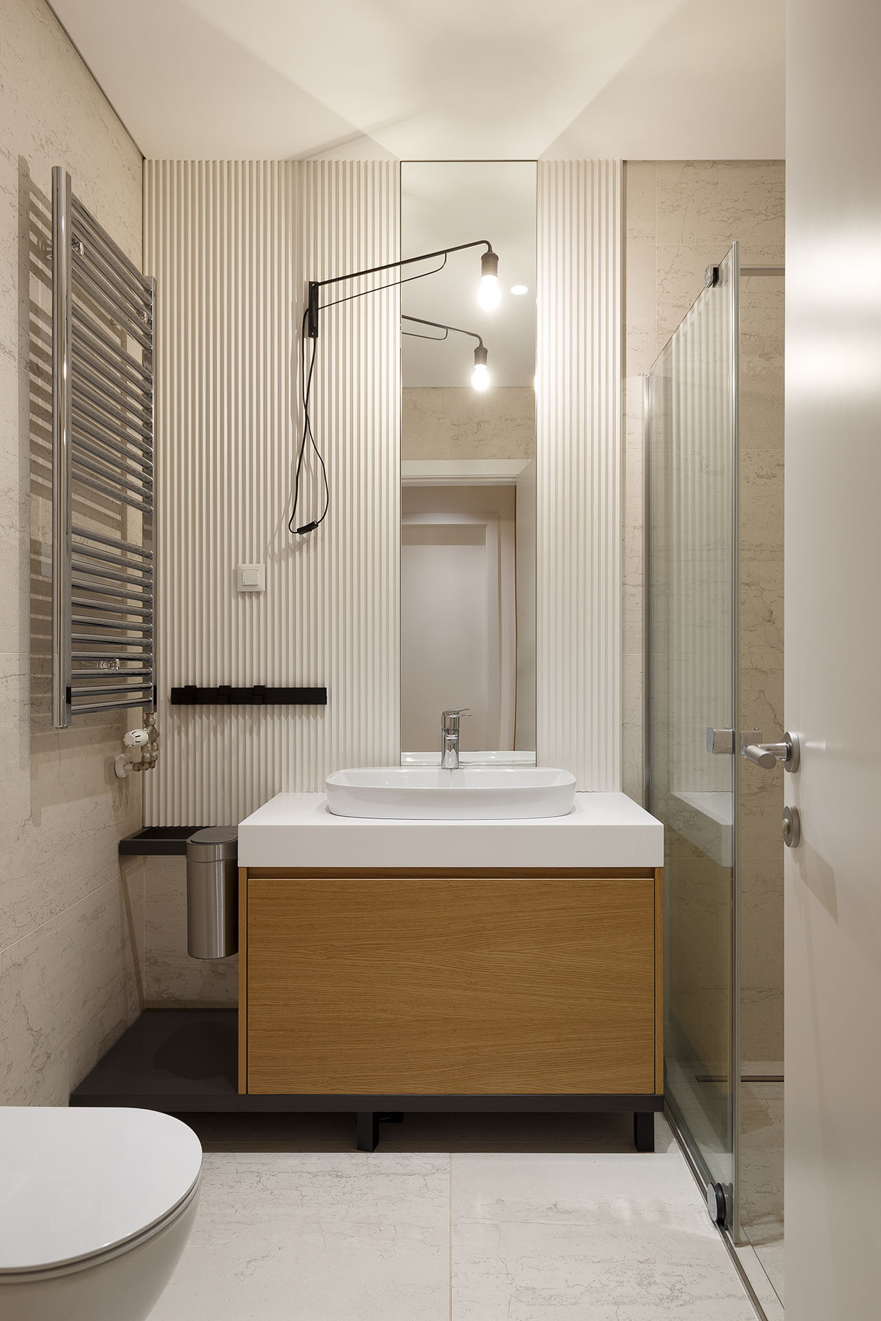 Za razliku od Beogradske škole stanovanja – koja je sve stambene zone tretirala jednako i uravnoteženo, u ovom stanu su neki elementi prenaglašeni, a neki redukovani. Upravo tako asimetričan, ovaj stan se savršeno uklapa u životni stil svog korisnika.