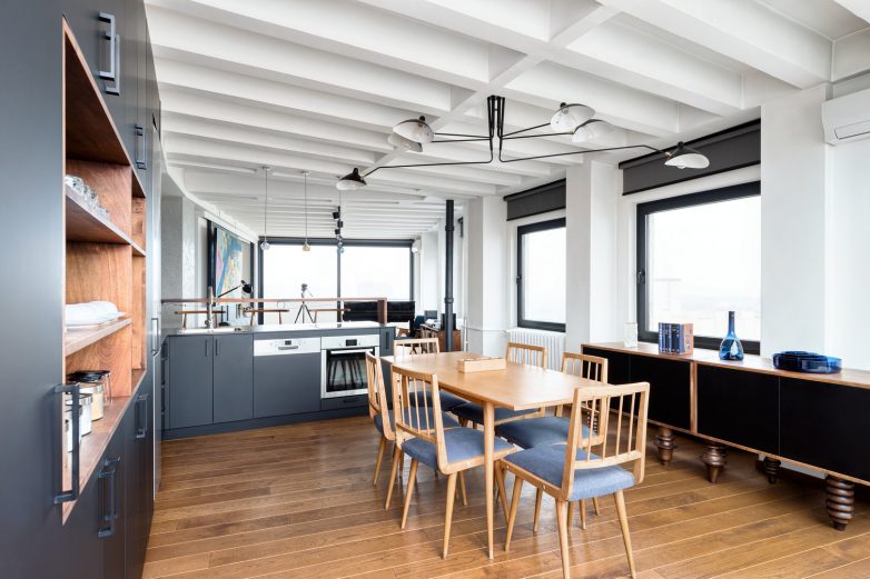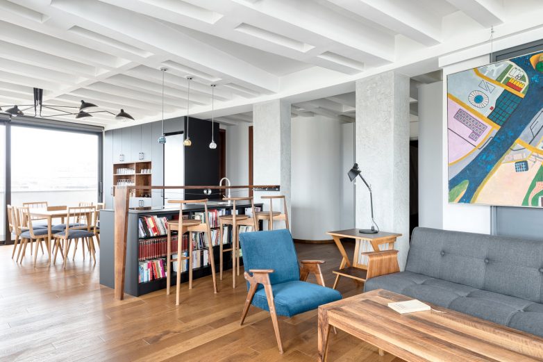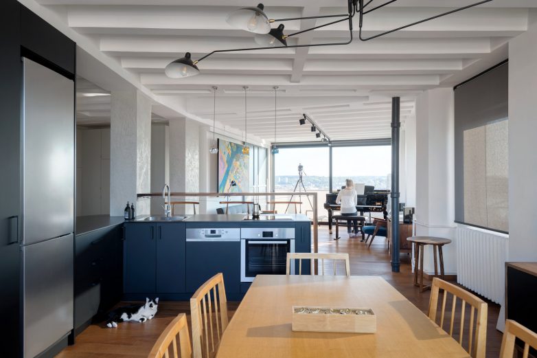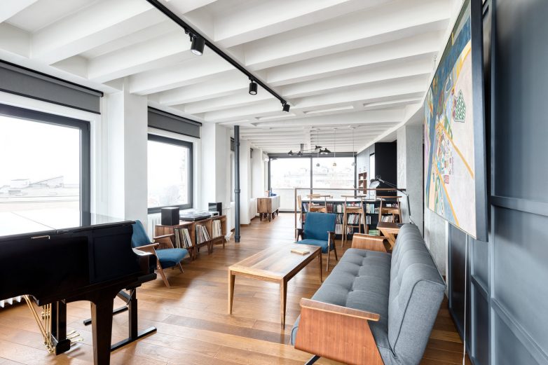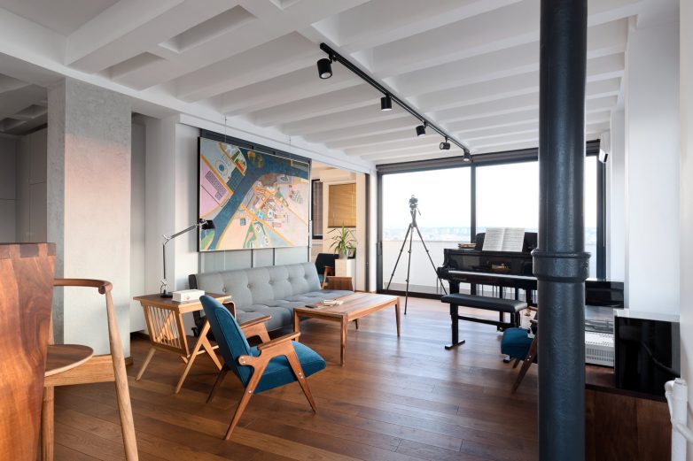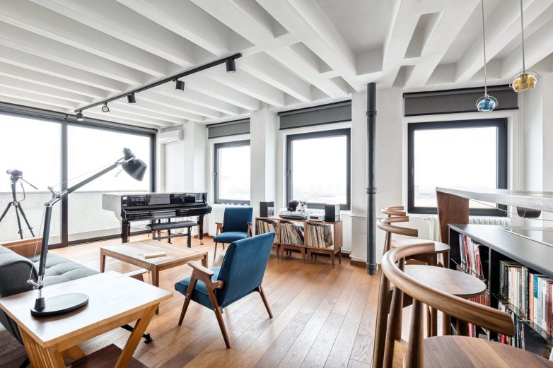 Da bi se dobilo na visini, skinuli smo spušteni plafon i ostavili rebrastu tavanicu vidljivom.