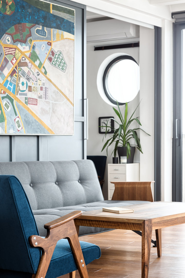 U srcu Beograda, u ulici Topličin venac, s pogledom na Savu i Dunav, Sabornu crkvu i Kalemegdan, nalazi se osmospratnica sagrađena 60-tih godina prošlog veka. Na osmom spratu uske ortogonalne građevine smešten je stan od 90 m2, nastao spajanjem dveju manjih stambenih jedinica. Arhitektice Teodora Del Canto Stamenković, Milica Lambrin i Aleksandra Prastalo dobile su zadatak da osmisle enterijer ovog stana a smernice za njegovu realizaciju našle su u jednoj umetničkoj slici ali i zoni za relaksaciju koja je smeštena usred nekadašnje lođe. Ali, krenimo redom.