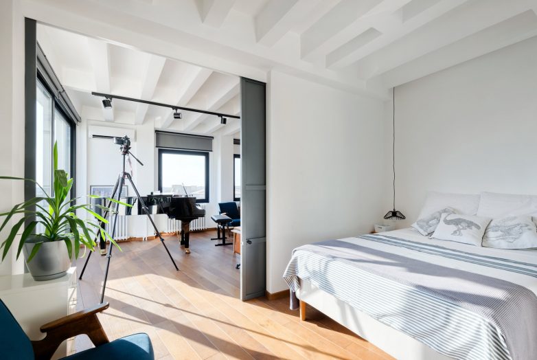 Na suprotnoj, severnoj, strani stana je manja spavaća soba gde je ručno rađeni krevet od orahovog drveta smešten takođe u bivšu lođu te je tako dobijen impresivan pogled na toranj Saborne crkve.