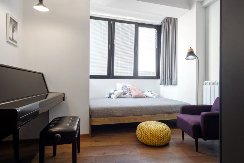 Želja klijenta ovog stana bila je da ima slobodnostojeću kadu u spavaćoj sobi, ali i da dnevni boravak krasi jedno posebno umetničko delo. To je odredilo ceo enterijer stana!