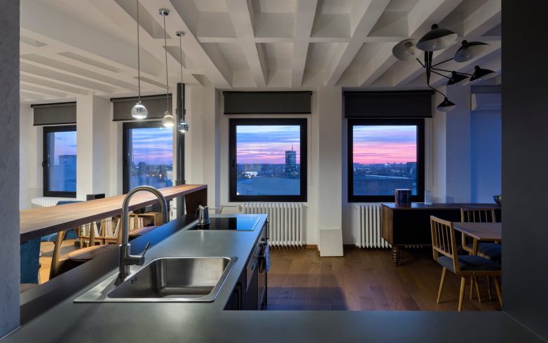 Od izlaska do zalaska sunca ovaj stan živi u simbiozi sa gradom i nebom oko njega i svedoči o jedinstvenom položaju Beograda na mapi Evrope.
