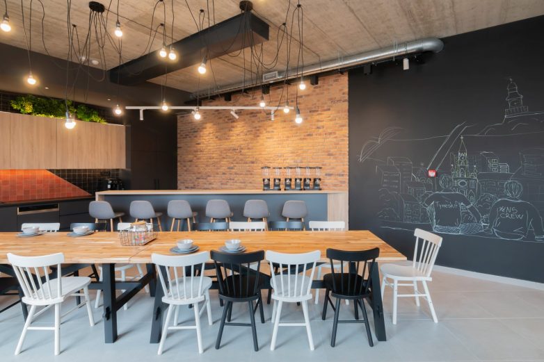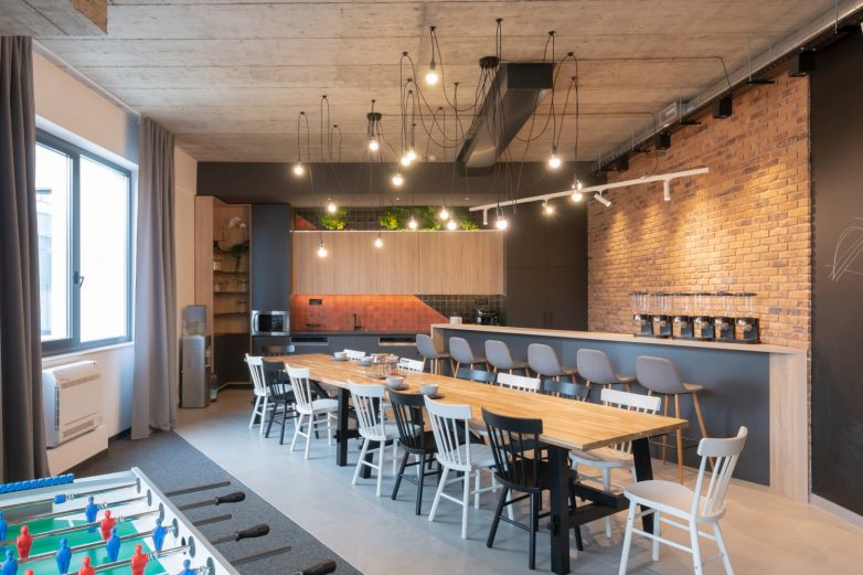 Pored formalnog kancelarijskog dela, u enterijeru je napravljen i deo za predah. Chillout zona u industrijskom stilu je mesto gde se zaposleni opuštaju, a na raspologanju im je kantina i šank napravljeni po meri, stoni fudbal kao i lounge deo sa sofom i foteljom koji je zamišljen poput dnevnog boravka.