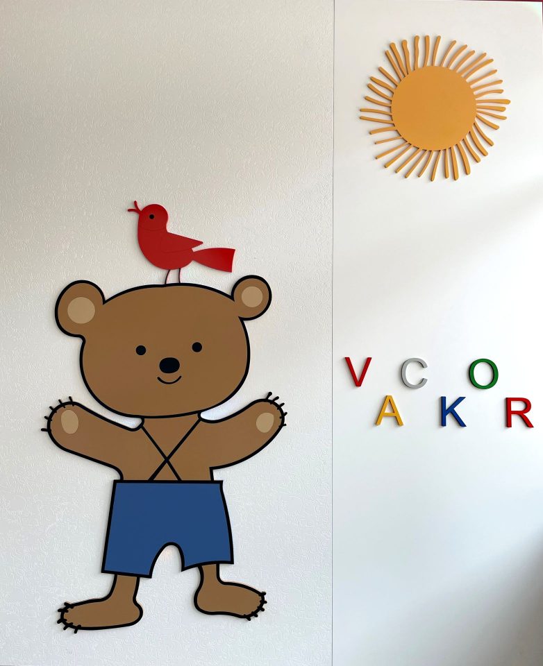 Lik medvedića iz crtanog filma se prožima u vidu zidnih MDF obloga kroz čitav objekat.