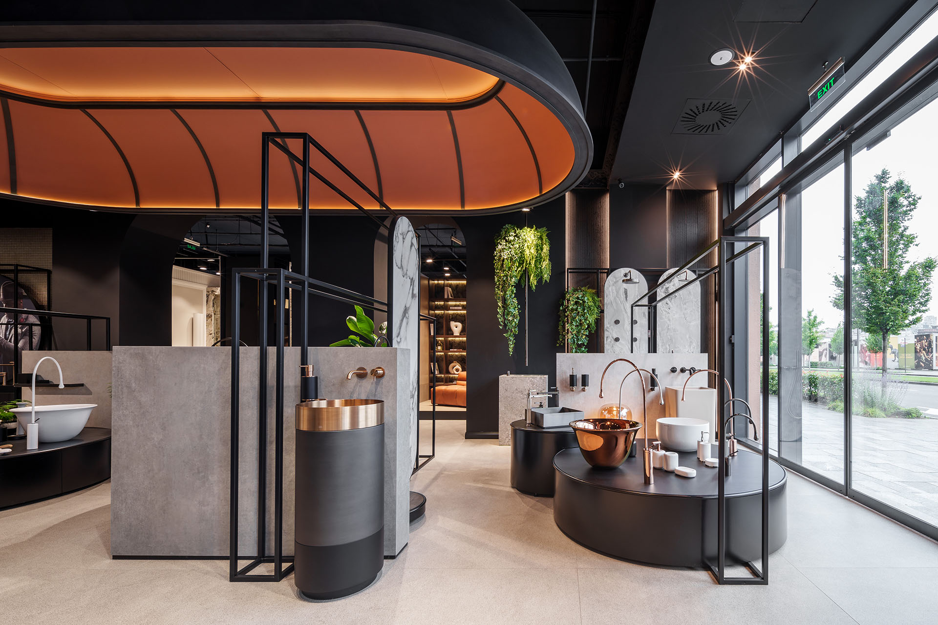 Salon, čiji dizajn enterijera potpisuje Studio Izba na čelu sa Jelenom Protić, koncipiran je kroz ambijente kupatila gde se nazire mogućnost kombinovanja svih brendova koje EuroDOM zastupa a mnogi od njih spadaju u najbolje na tržištu.