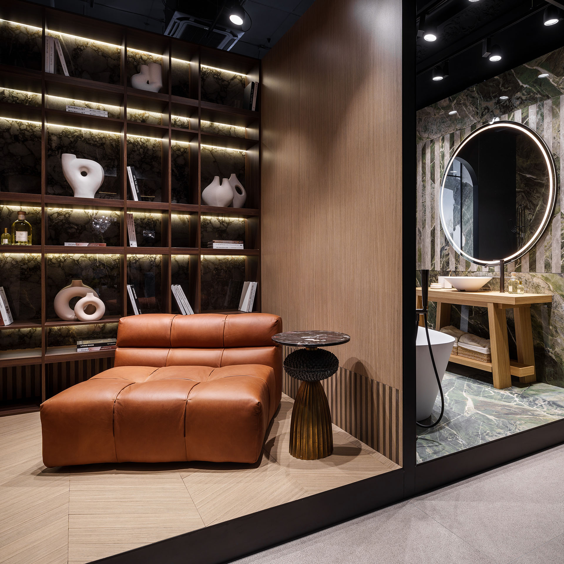 Ovaj salon na oko 300 kvadrata koncipiran je tako da odgovori istovremno na zahteve kupaca ali i arhitekata. Napravljene su zone prodaje i prezentacije koje će omogućiti posetiocima uvid u mogućnosti i bogat asortiman koji nam nudi ova kompanija.