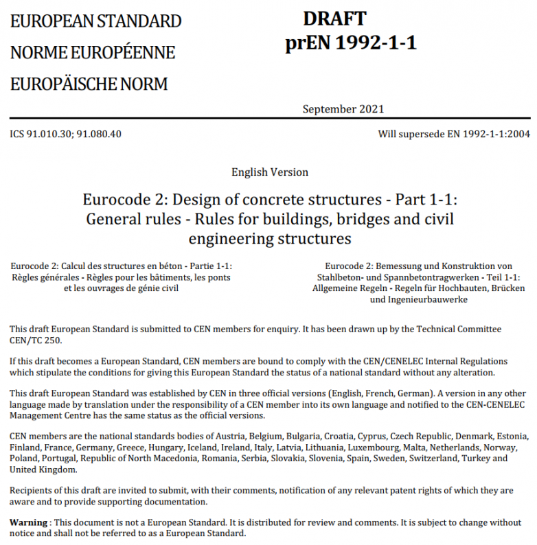 Nakon 7 radnih verzija teksta standarda, došlo se do verzije koja u delu 1-1 sadrži 375 strana teksta i 75 strana u delu 1-2, odnosno značajno više od trenutnih verzija( slika 3). Ovo je najvećim delom zasluga novih priloga kao i činjenice da su dosadašnji deo 2 (EN 1992-2) za projektovanje betonskih mostova i deo 3 (EN 1992-3) za rezervoare i silose postali „samo“ prilozi u delu 1-1.