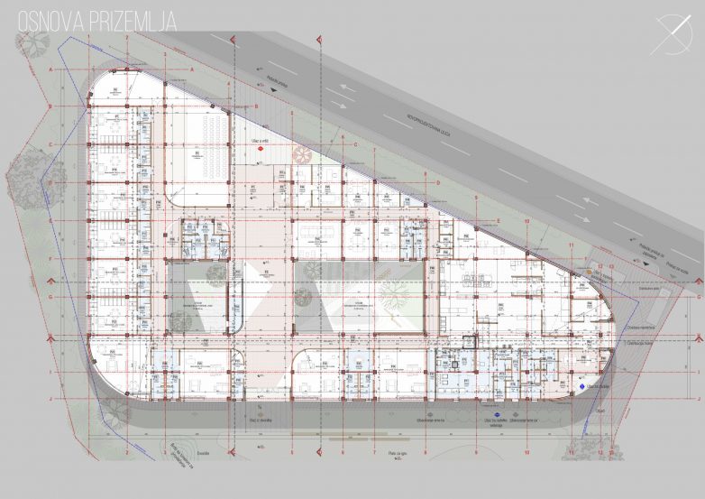 Glavna noseća konstrukcija je skeletna, livena na licu mesta sa nosećim ramovima u obadva ortogonalna pravca. Fasadna obrada je ventilisana fasada. Zasena/obloga je izrađena od plastificiranih aluminijumskih profila i čelične potkonstrukcije.