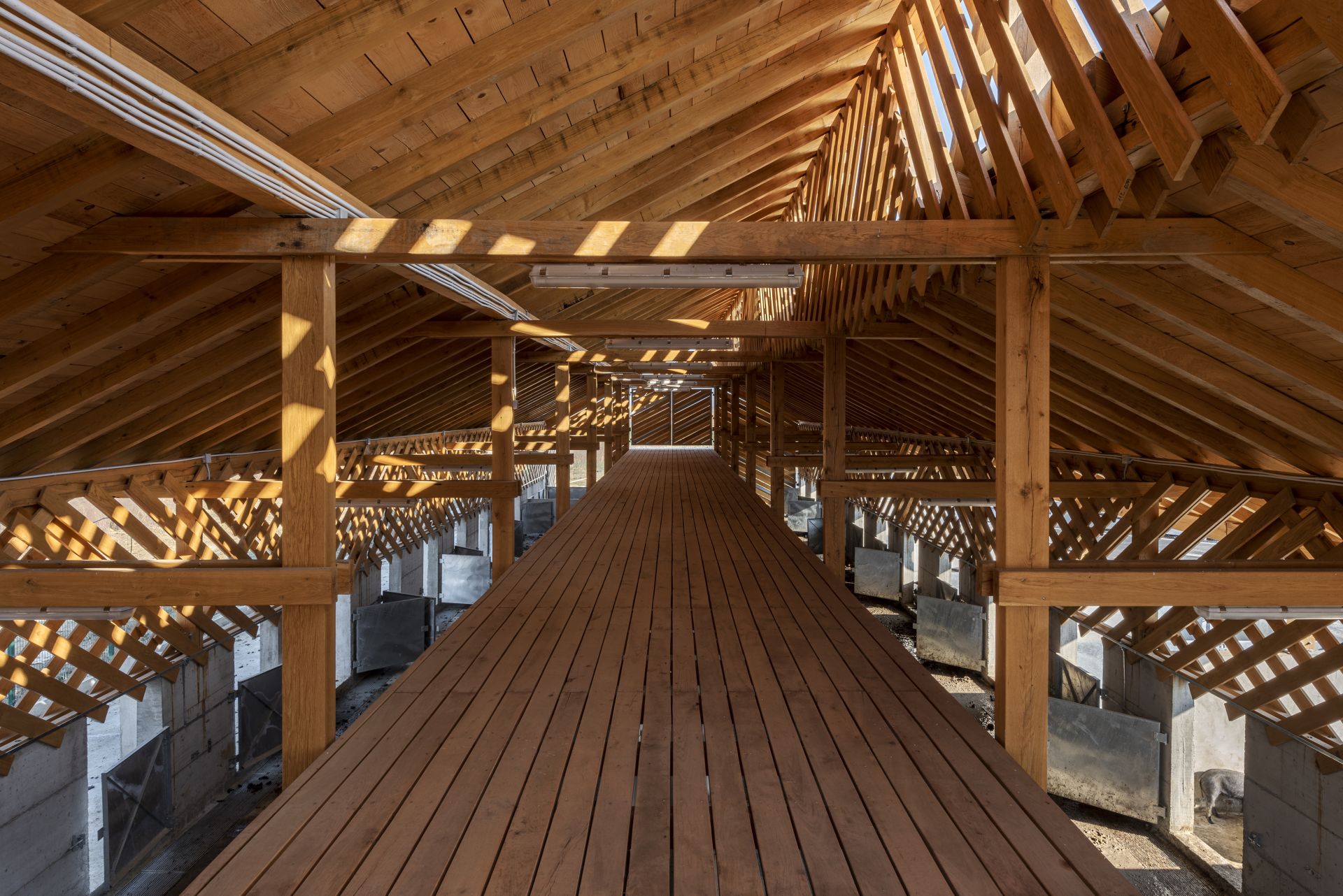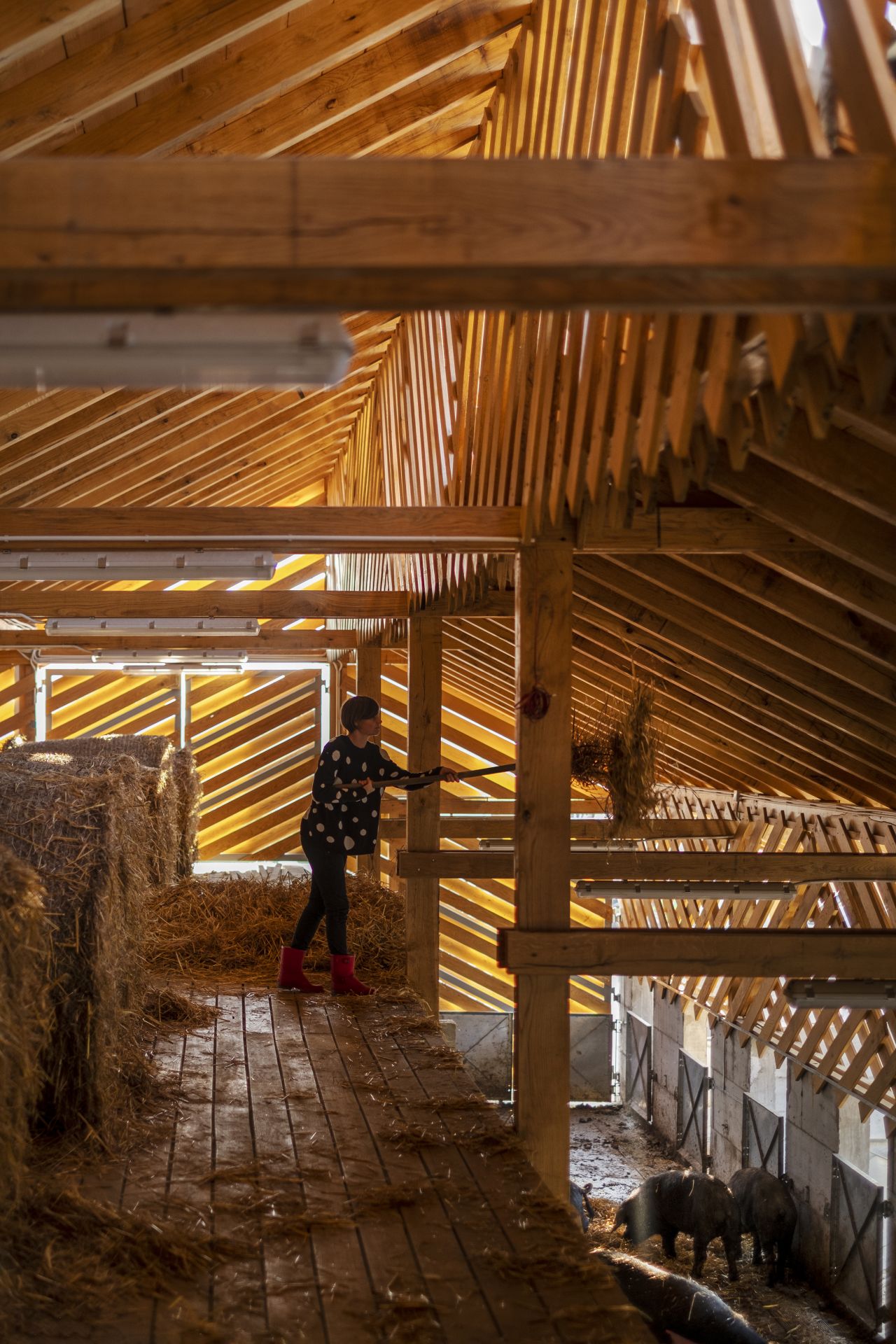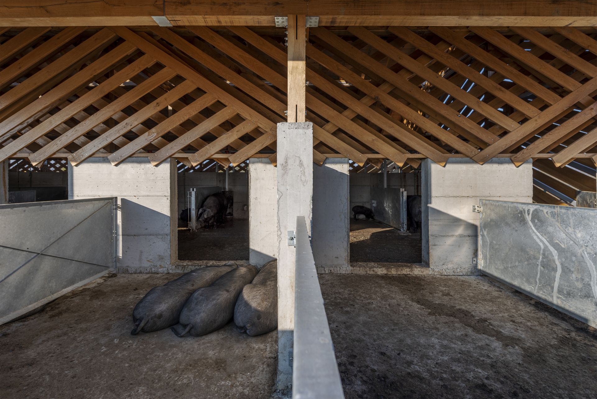 Dizajnerska farma svinja oblikovana je prema savremenim standardima uz upotrebu jednostavnih i neobrađenih materijala direktno podređenih funkciji i kontekstu.