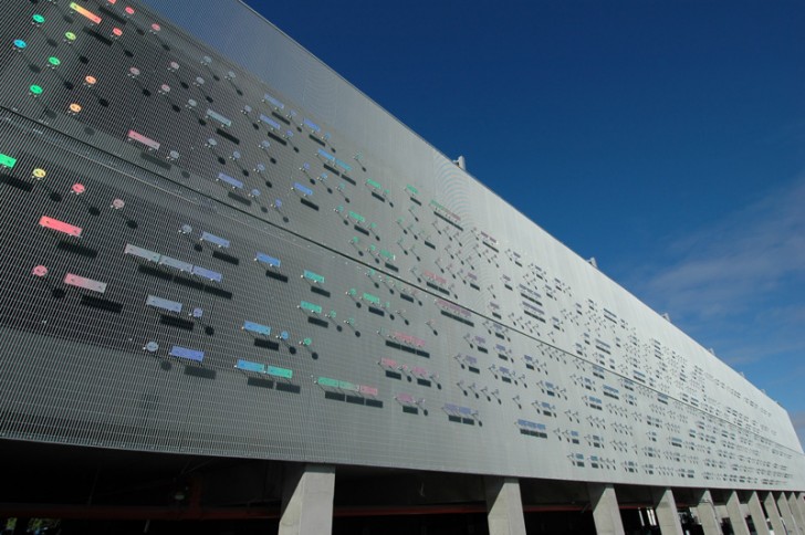 Ova intervencija na fasadi zapravo je instalacija nazvana Horizon i izvedena je od plastificiranih staklenih elemenata zakačenih za objekat. Na prvi pogled, nasumični raspored šarenih crtica i krugova ne znači ništa ali oni zapravo imaju smisao jer su to tekstovi ispisani Morzeovom azbukom. Tekstovi predstavljaju citate Abrahama Linkolna i Eleonore Ruzvelt, piše Contemporist.