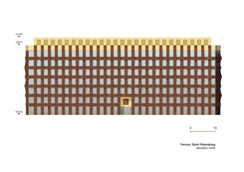 Sedmospratni poslovni objekat Ferrum 1 u Sankt Peterburgu, za koji projekat potpisuje arhitekta Sergei Tchoban, jedna je od nekoliko zgrada koje je njegov studio projektovao u krugu bivše fabrike Rossiya u distriktu Polustrovo. To je jedna od prvih zgrada u Rusiji izgrađena primenom skulpturalne fasade od Corten čelika koji joj je dao spektakularan izgled.