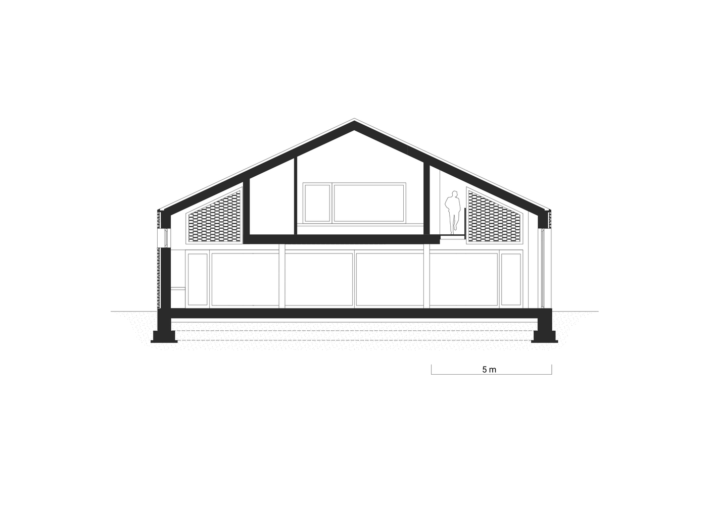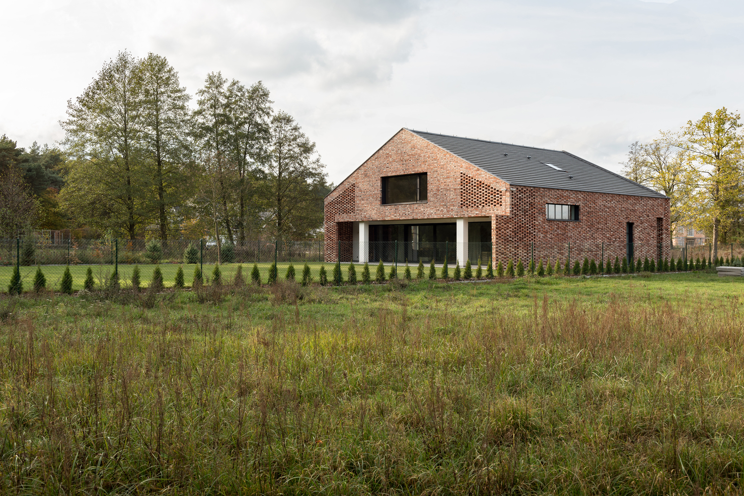 Kuća od 270 m2 za koju projekat potpisuje firma Wrzeszcz Architekci izgrađena je na mestu gde se spajaju ove tri zone, na lokaciji u čijoj se okolini nalaze stare, istorijske nemačke štale, koje su i dalje karakteristični elementi okolnog pejzaža.