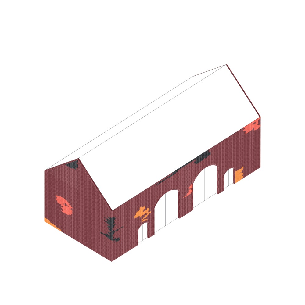Fasada se sastoji od četiri vrste opečnih veza sa različitim nivoima oblikovanja i transparentnosti.