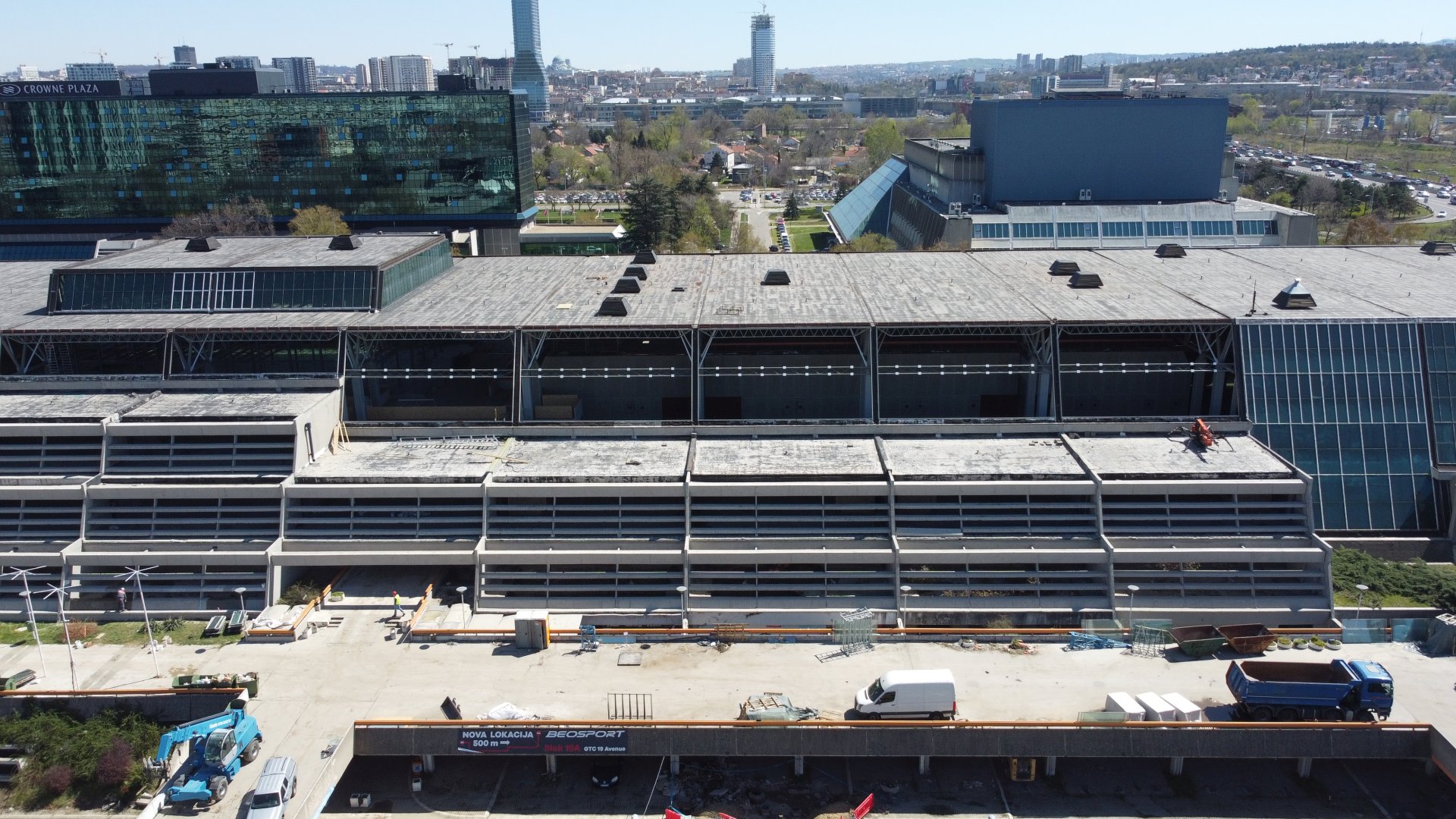 Sanacija betonske, krovne i staklene fasade je u toku dok se paralelno radi antikorozivna i protivpožarna zaštita konstrukcije krova na ikoni Novog Beograda.