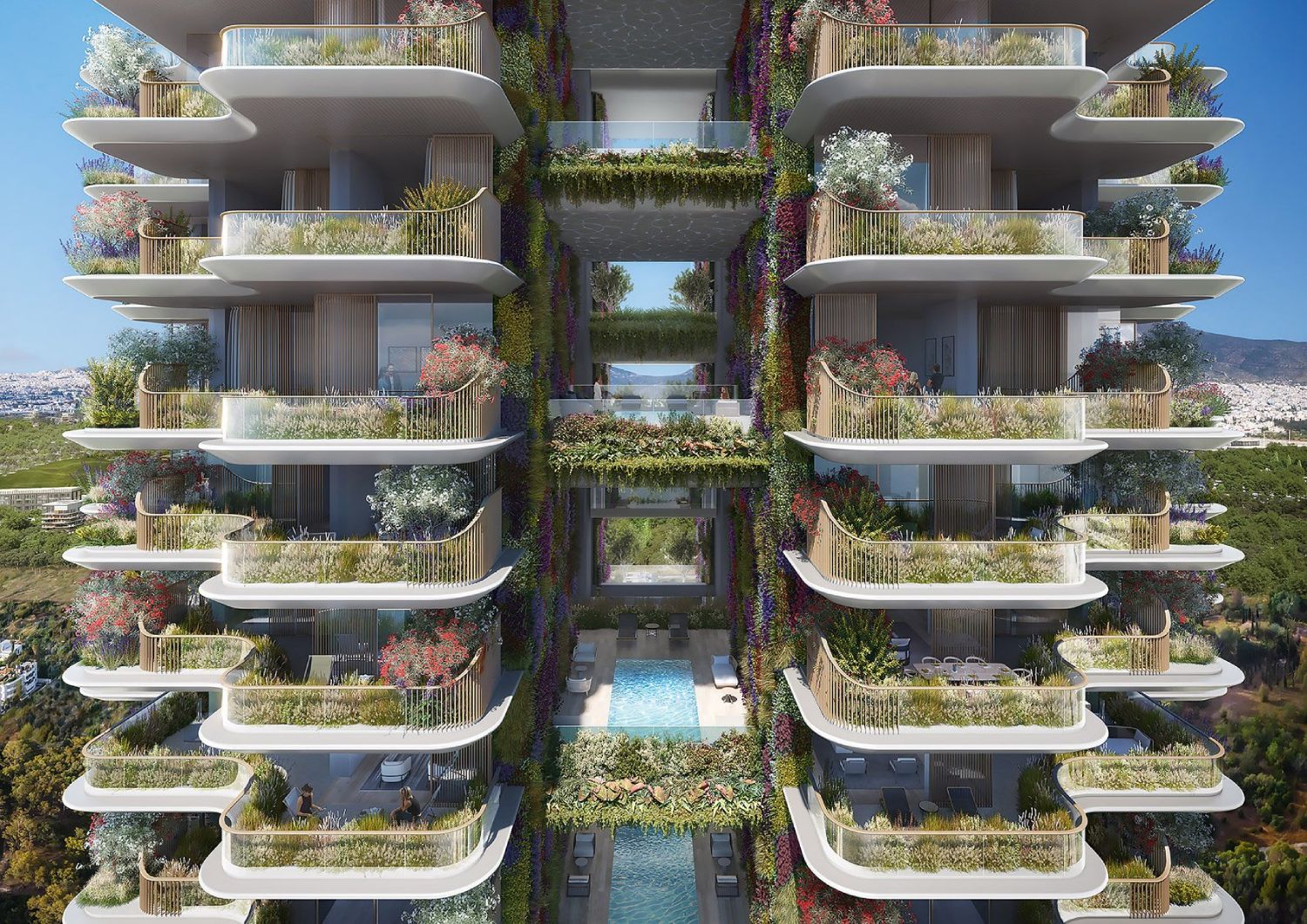 U eksterijeru, objekat će karakterisati elegantna forma, prekrivena zelenilom, i kako za Dezeen navode autori „dizajnirana na način da se stopi sa posebnim karakterom mediteranskog pejzaža“.