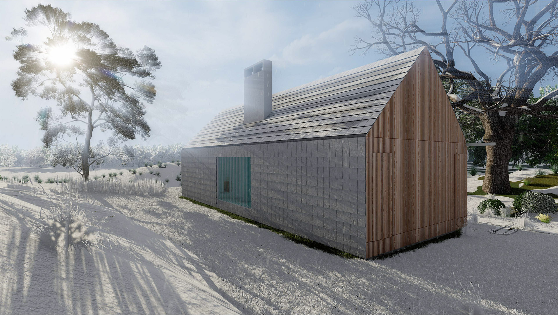 Formirana je promenljiva dnevna i sezonska dinamika fasade, gde se u zoni unutrašnjih prostorija dozira nivo otvorenosti prema spoljašnjosti, dok se u zoni centralnog trema formira otvoreni prostor za pripremu hrane i socijalizaciju u toplom periodu godine, odnosno zimska bašta u toku hladnog perioda.