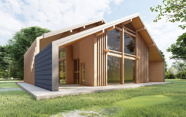 Konstruktivni sklop je koncipiran kao montažni objekat na zidanoj bazi – suterenu, odnosno ploči prizemlja. Nadzemni deo objekta – spoljnji zidovi i krov projektovani su kao drvena konstrukcija o lameliranog drveta, ispunjena savremenim еnеrgetski-efikasnim termoizolacionim panelima, sa završnom spoljnom obradom u vidu drvene vetrene obloge fasade, cementnih krovno-fasadnih crepova, odnosno krečenih površina u zoni enterijera trema.