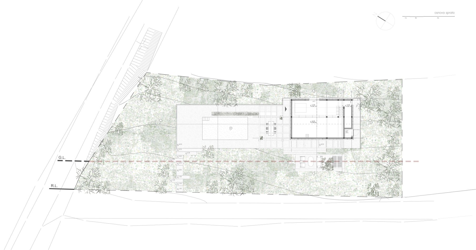 Arhitekte iz INKA studija projektovale su i urbanističku kompoziciju na parceli sa pozicijom popločanih terasa, „lebdećih stepenika“, upuštenih dvorišta u teren, popločanog trema sa bazenom i plažom, ulaznih staza, kao i staza oko kuće.