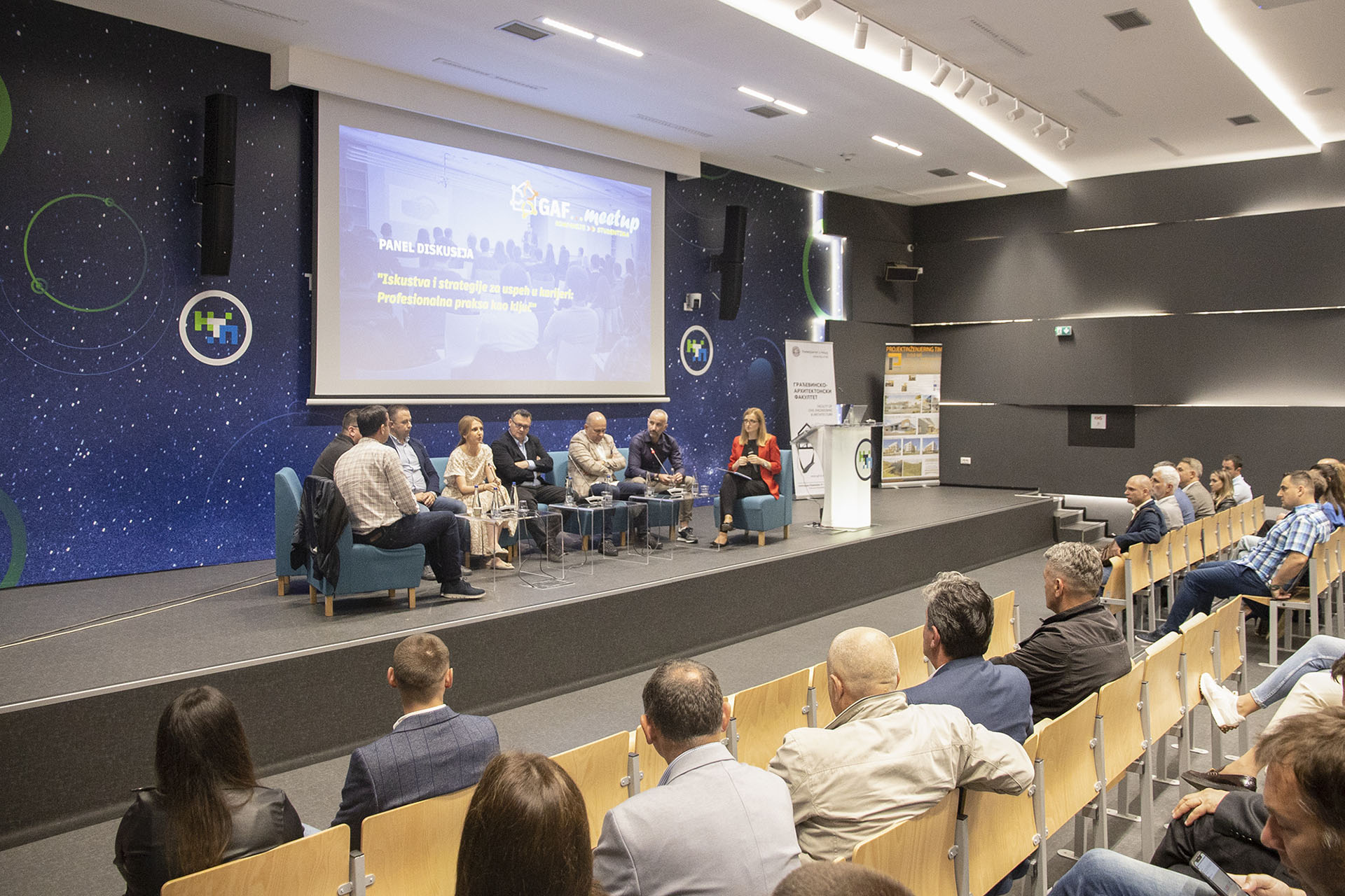 U okviru prvog GAF Meetup-a organizovana je i panel diskusija na temu „Iskustva i strategije za uspeh u karijeri: Profesionalna praksa kao ključ“ na kojoj je bilo 7 učesnika, alumnista Građevinsko-arhitektonskog fakulteta, a to su Milan Cvetković, Aleksandra Stanković, mr Boban Veličković, dr Milan Tanić, Miodrag Jović, Aleksandar Stojanović i Miroslav Kostić.