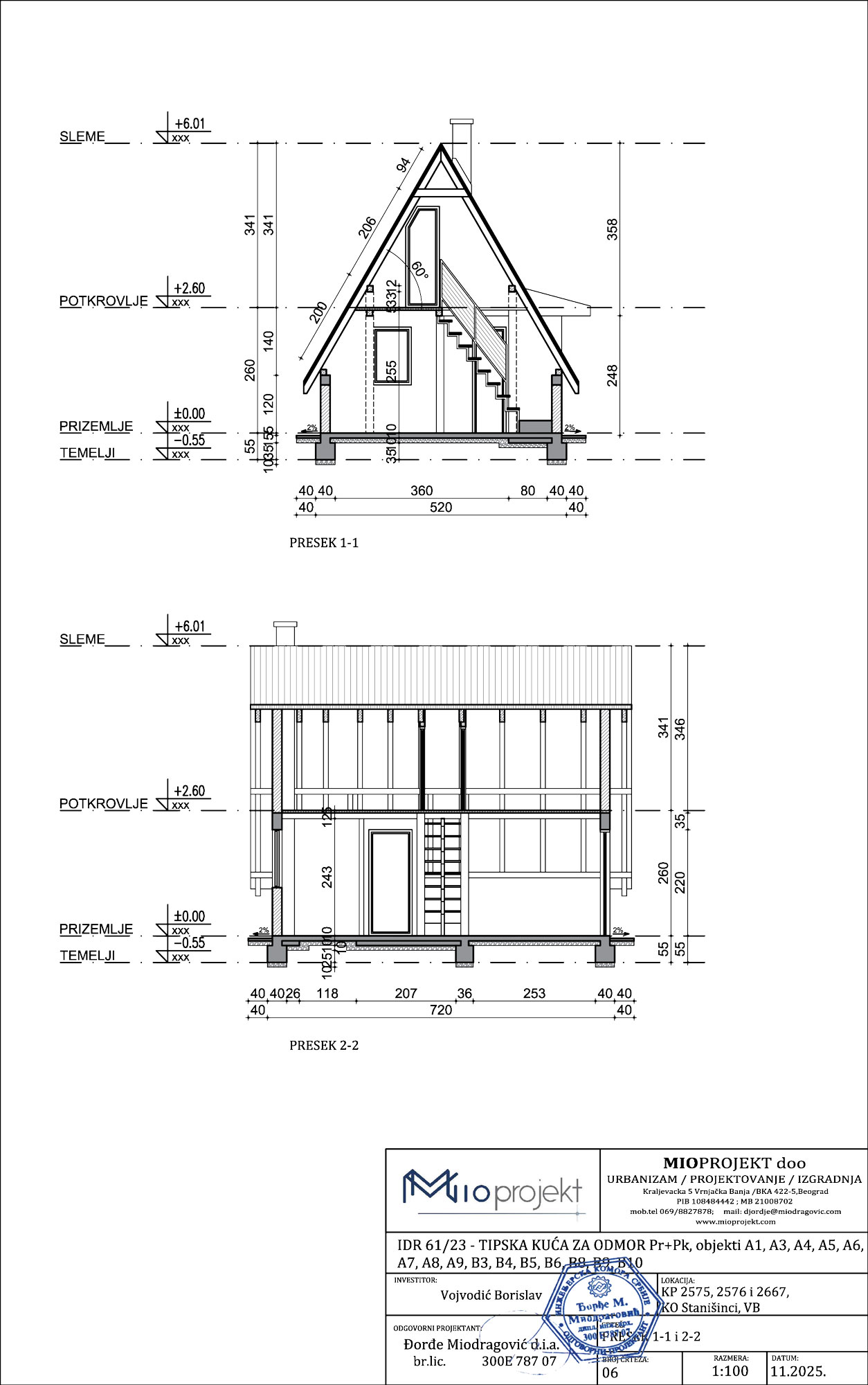 Tipska kuća 1 – preseci