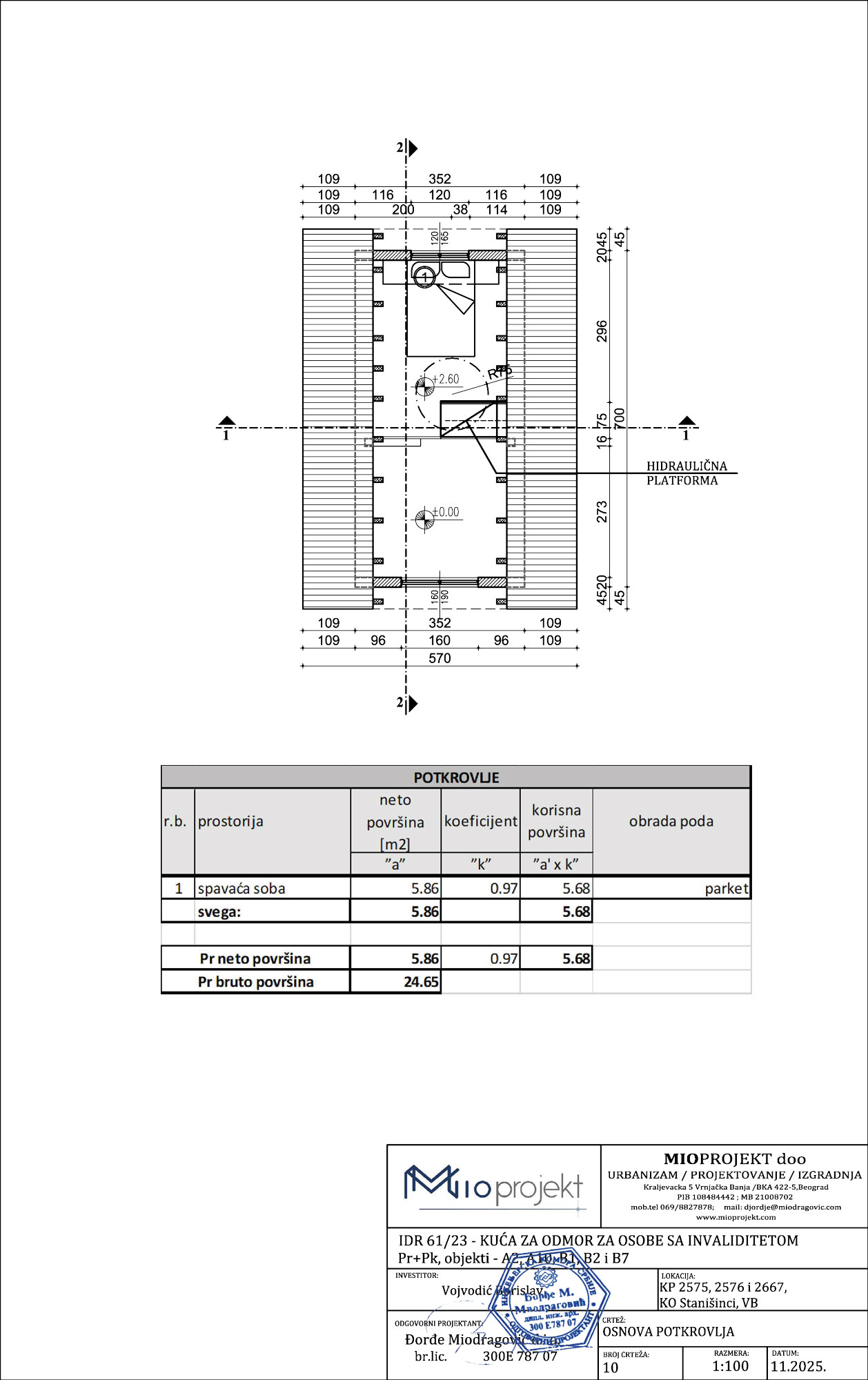 Investitor je fizičko lice, nosilac izrade urbanističkog projekta je preduzeće Arhitekt PRO d.o.o. iz Vrnjaca, dok je obrađivač idejnog rešenja firma MioProjekt d.o.o. iz Vrnjačke Banje. Kao odgovorni urbanista i odgovorni projektant potpisan je Đorđe Miodragović, diplomirani inženjer arhitekture.