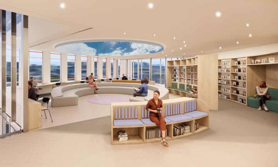 Renderi enterijera koje je napravila firma BDG Architects prikazuju prostore kao što su „tiha zona“ sa nišama za individualno fokusiran rad, te umetničku instalaciju iznad glava zaposlenih koja pruža „pogled na oblake koji prolaze“.