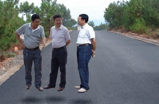 Problem je međutim što se očigledno vidi da se radi o fotomontaži i to vrlo nespretnoj, što je dovelo do velikog skandala. Kineski političari izvinili su se zbog loše urađene fotografije muškaraca koji su išli u inspekciju novoizgrađenog puta.
